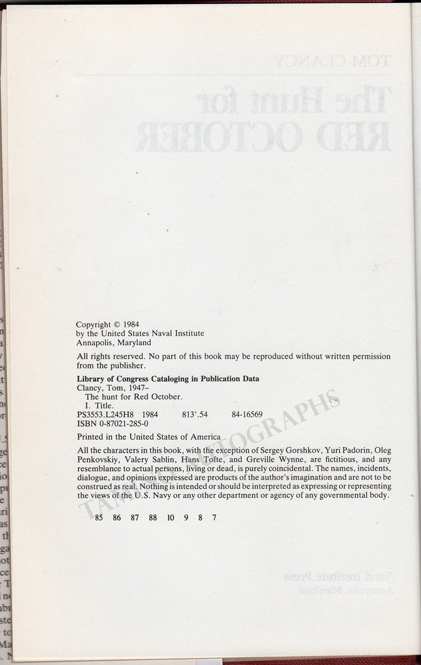 Clancy, Tom - Signed Book "The Hunt for the Red October"