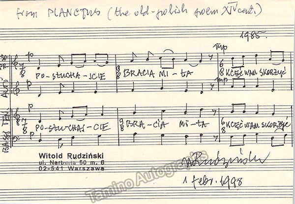 Rudzinski, Witold - Signed Photograph + Autographed Musical Quote
